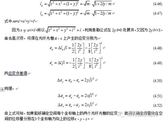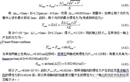 由式(4.56))可知,其它轴向的加速度分量会在这个轴向产生位移,下面分析一下其它轴向的加速度分量对这个轴向的光纤光栅的应变的影响。