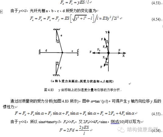 设质量块只有y轴方向的位移y,光纤光栅的弹性模量为E,其横截面积为S,此时光纤光栅d和c的力变化的大小为