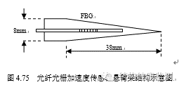 刘波等人[55]提出了一种基于悬臂梁结构的新型光纤光栅加速度传感器。测量范围±10g, 灵敏度10mg, 测量频率小于100Hz。与光纤加速度传感器相比, 光纤光栅加速度传感器具有更高的稳定性及抗干扰能力。并且由于光纤光栅本身的波分复用的特性, 可以很方便地构成加速度传感网络进行测量。
