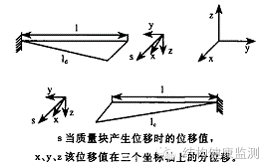 且力F的方向与加速度方向一致。此时,相当于在等强度悬臂梁自由端施加了大小为F的荷载而引起梁弯曲。由于各矢量均沿y方向,因此,只取其模进行计算,而用正负号表示其方向。将式(4.38)代入式(4.37)可得