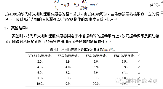 通过对表4.4的数据进行分析可以得出:(1)光纤光栅加速度计的测量精度约为0.01g。(2)其结果具有较好的重复性;(3)其线性拟合度可达0.999。